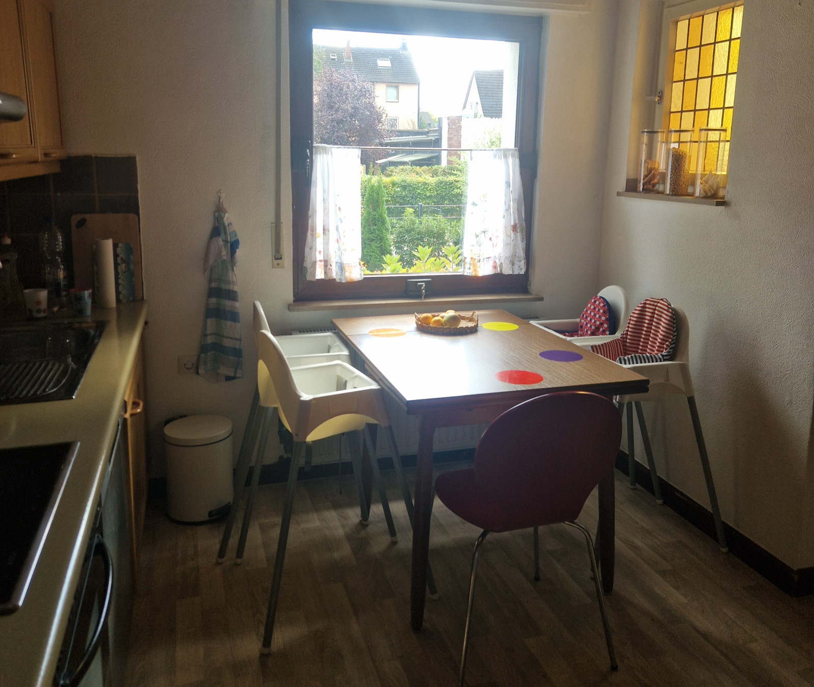 Die Küche ist besonders wichtig: hier bereiten wir – auch oft gemeinsam mit den Kindern – die Mahlzeiten zu und lassen es uns zusammen am großen Tisch schmecken.
